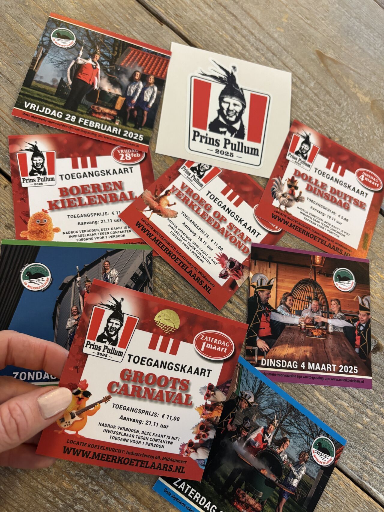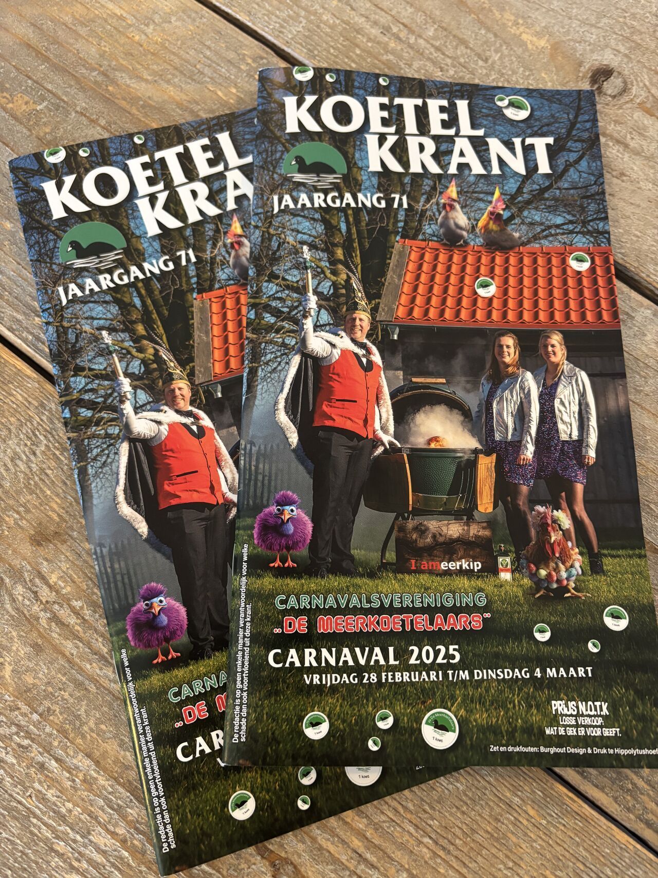 De eerste dag in de Koetelburcht zit er alweer op.. nou ja, het feest dan. Want al die dagen voorbereiding vooraf, daar hebben we het nog helemaal niet over gehad. Mag ook niet, want het meeste is zwaar geheim natuurlijk. Maar nu het feest is losgebarsten en Prins Pullum voorlopig nog even niet met de kippen op stok gaat, kan ik hier het werk wel delen. Het was er druk van de laatste weken. Van logo, naar Koetelkrant, langs stickers, posters, toegangskaarten met goudfolie, shirts voor de Dansmarieke’s, grootformaat banners voor in de zaal.. en alles wat ik nu nog ben vergeten… de Meerkoetelaars zijn er klaar voor! Bedankt voor het vertrouwen wat jullie mij elke keer weer geven en een heel gezellig feest allemaal!