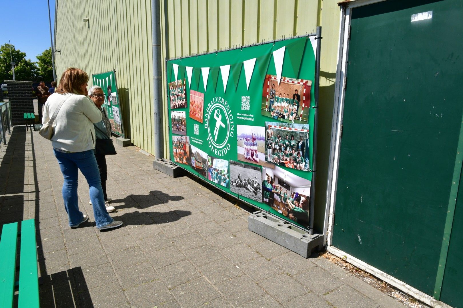 Hier zie je de enige foto die het bewijs levert van mijn kortstondige handbal carrière bij HV Tonegido... ik denk dat ik daar ongeveer een jaar of 10 was.. nu zijn we 40 jaar verder en vierde de vereniging haar 80-jarig jubileum. Voor het feestweekend heb ik een aantal leuke dingen mogen maken, kijk bijvoorbeeld naar de Juichsjaal, die elk jeugdlid na de clinic heeft gekregen! Supertof! of de bouwhekbanners met leuke oude foto's. Die foto's zijn door Berna bijeengezet op www.tonegidoarchief.nl Ga daar eens kijken en misschien kom je jezelf nog tegen! Al met al was het een heel zonnig en gezellig weekend. Van harte gefeliciteerd met dit prachtige jubileum! (fotocredits: Eline)